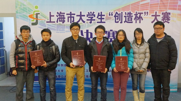 为培养大学生创造能力、动手能力和团队协作精神,2013年12月21日,由上海市创造学会主办、同济大学承办的2013年上海市大学生“创造杯”大赛在同济大学举行。此次决赛分为土木交通环境类、机械电子类两个大类。经学院申报、校团委组织选拔,最终,工程学院的4个项目、信息学院的2个项目代表我校进入了此次大赛的决赛。