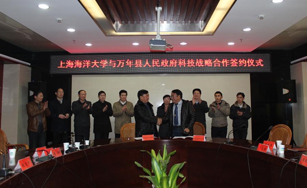 2013年12月28日,我校黄硕琳副校长带领水产与生命学院负责人及上海高校知识服务平台淡水珍珠知识服务团队部分成员,考察了江西省万年县水产养殖,特别是淡水珍珠养殖、加工、产业发展情况,并与万年县人民政府签署了科技合作协议。