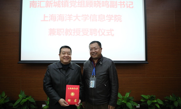 12月31日下午,南汇新城镇党委副书记顾晓鸣教授受聘我校兼职教授仪式在图文信息中心102举行,人事处处长杨昕、信息学院领导班子和全院教师参加了会议。会议由信息学院院长黄冬梅主持。