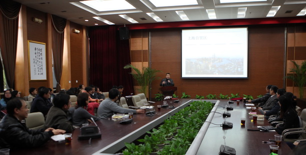 聘任仪式后,顾晓鸣教授为信息学院全院教师作了“上海自贸区及自贸区下临港新城发展”的专题报告。顾教授首先为大家解读了什么是上海自贸区,并从国家经济发展战略的高度,逐一分析了开办上海自贸区是为了适应国际贸易的新形势;对自贸区“一线逐步彻底放开,二线安全高效管理,区内自由流动”特点进行了探讨;解析了保税区和自贸区的差别及国际外部环境TTP和TTIP的应对策略。接着,顾教授为大家介绍了临港新城六大产业集群、功能定位,并为大家描绘了临港新城美好的发展蓝图。