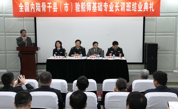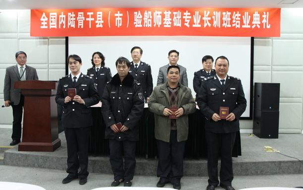 2014年1月9日下午第二期全国内陆骨干县(市)验船师基础专业长训班结业典礼在上海海洋大学图文信息中心406会议室顺利举行。农业部渔业船舶检验局李杰人局长和上海海洋大学程裕东校长出席了本次典礼,并为学员颁发结业证书。