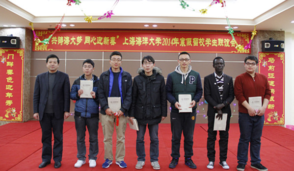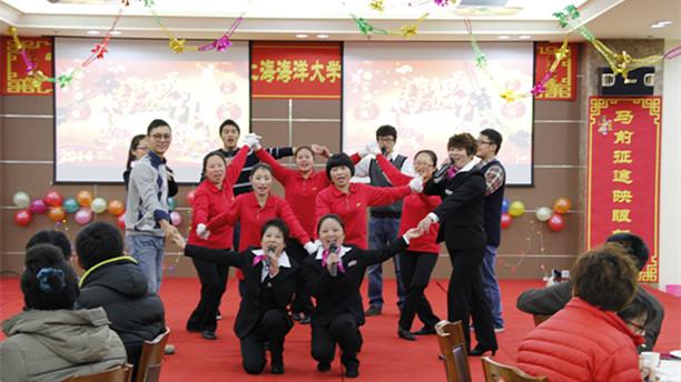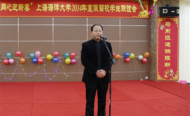 金蛇狂舞腾云去,万马奔腾踏春来。2014年1月25日晚,临港新城校区第二食堂二楼内张灯结彩,春意盎然,一幅幅对联和挂满墙壁的中国结寓意着农历新年的到来,欢声笑语中洋溢着节日的喜庆祥和,“共铸海大梦 同心迎新春”上海海洋大学2014年寒假留校学生联谊会在这里热烈举行。团市委副书记杨元飞、市学联副秘书长王晶、南汇新城镇党委委员、副镇长张校平、校党委书记吴嘉敏、校长程裕东、校党委副书记汪歙萍以及职能部门、学院党政领导等与留校学生220余人同庆新春,喜迎新春佳节。联谊会由校党委书记吴嘉敏主持。