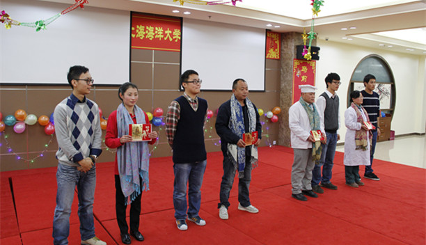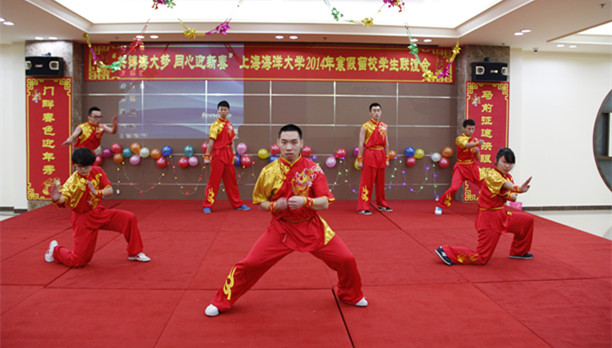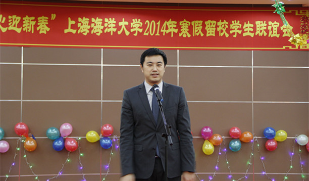 金蛇狂舞腾云去,万马奔腾踏春来。2014年1月25日晚,临港新城校区第二食堂二楼内张灯结彩,春意盎然,一幅幅对联和挂满墙壁的中国结寓意着农历新年的到来,欢声笑语中洋溢着节日的喜庆祥和,“共铸海大梦 同心迎新春”上海海洋大学2014年寒假留校学生联谊会在这里热烈举行。团市委副书记杨元飞、市学联副秘书长王晶、南汇新城镇党委委员、副镇长张校平、校党委书记吴嘉敏、校长程裕东、校党委副书记汪歙萍以及职能部门、学院党政领导等与留校学生220余人同庆新春,喜迎新春佳节。联谊会由校党委书记吴嘉敏主持。