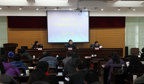 校党委副书记、纪委书记何雅主持会议并传达中纪委三次全会、上海市纪委三次全会精神,并布置了2014年校党风廉政建设主要工作。校纪委副书记郑卫东解读2013年以来中央关于贯彻中央八项精神、反对四风系列文件精神,校党委书记吴嘉敏作总结讲话,程裕东校长出席会议。全体中层干部以上干部出席会议。会议印发了《中央十五项“禁令”学习宣传手册》。