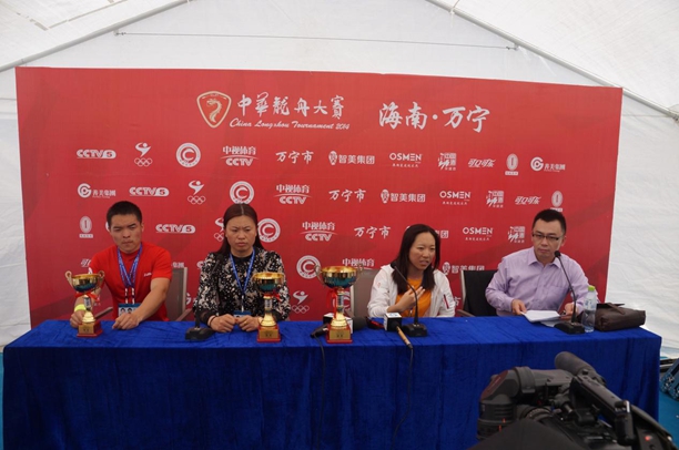 队长任玉龙(左一)出席中华龙舟大赛新闻发布会