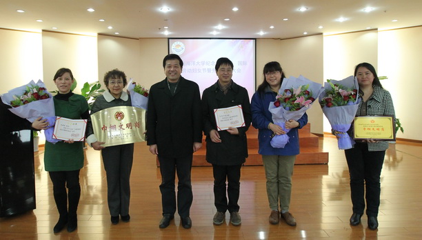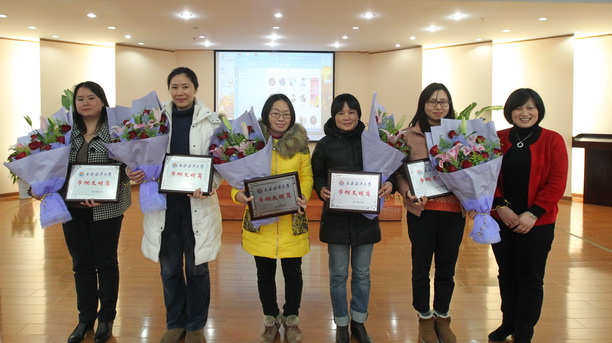 校工会专职副主席成长生宣读表彰决定,授予人文学院学生工作办公室、国际文化交流学院、水产与生命学院学生工作团队、工程学院实验中心、信息学院数学公共基础教学部等5个部门校“巾帼文明岗”称号。人文学院学生工作办公室和国际文化交流学院还分别获得上海市和教育系统“巾帼文明岗”称号,食品学院包海蓉老师获得教育系统“巾帼建功标兵”称号,食品学院包斌、吴文惠夫妇获得第九届教育系统“比翼双飞模范佳侣”称号。会上对获奖集体和个人分别予以授牌和颁发证书。