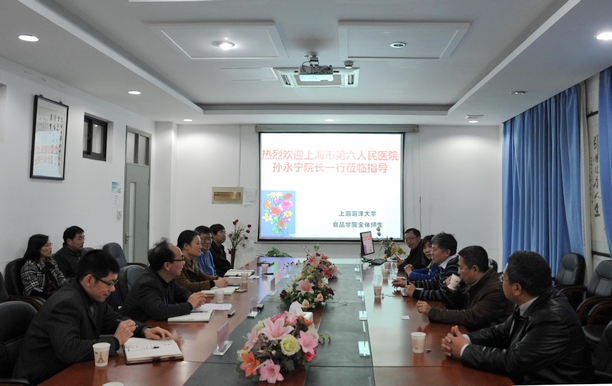 继去年10月底我校与上海市第六人民医院东院正式签订合作框架协议之后,2014年3月19日,上海市第六人民医院东院孙永宁副院长携科教处王建波处长、护理部、药剂科、营养科等负责人一行8人,来我校食品学院开展共建对接交流会。食品学院领导班子成员及部分专业教师参加了此次共建交流会。会议由陈江华书记主持。