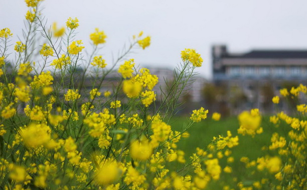 早晨,一切都像刚睡醒的样子,欣欣然张开眼,西体育场旁的油菜花地,黄绿黄绿的,不知是什么时候 “噌”地一下窜出了头,趁这明媚的春日,茁壮成长。