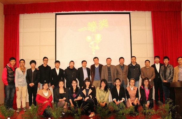 博士组论文报告结束后,综合硕士组的口头报告结果,学院产生一等奖三人,二等奖三人,三等奖六人。赛后,在本次“天根杯”研究生论文报告会颁奖仪式上,评审专家与天根生化科技有限公司销售主管陈宁先生为获奖的同学颁发证书,并合影留念。
