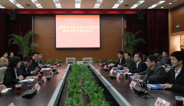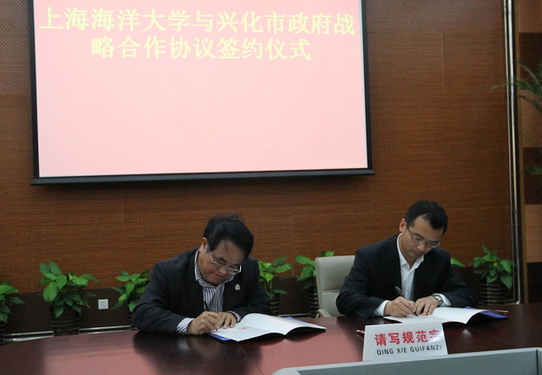 2014 年4月4日,我校与兴化市人民政府科技合作协议签约仪式在图文中心102会议室举行。副校长黄硕琳、校长助理兼水产与生命学院院长李家乐、科技处处长谢晶、水产与生命学院副院长谭洪新、院长助理商利新和江苏兴化市人民政府副市长周钧、水产局局长王福全等出席了签约仪式。黄硕琳副校长和周钧副市长代表双方签署了合作协议。签约仪式由谢晶处长主持。