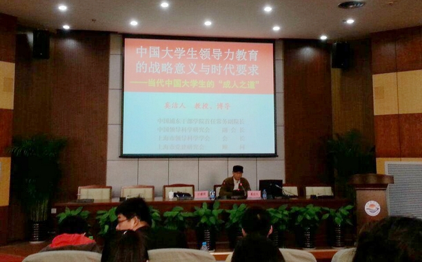 2014年4月8日下午,上海领导科学学会会长奚洁人教授应邀为元鼎学员以及各院学生骨干们做了一场有关“中国大学生领导力教育的战略意义与时代要求”的讲座,解答了中国大学生“成人之道”的各种疑问。