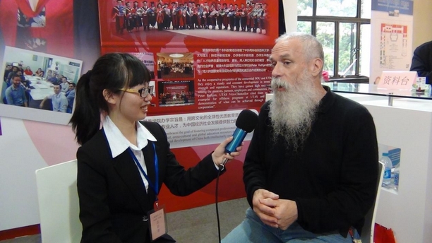 开展首日,院领导王基组教授接受了来自“海峡之声”记者的采访。在采访过程中,王基组就教育国际化对学生未来的影响和爱恩学院的办学特色与优势,回答了记者的提问。4月12日,澳大利亚驻华大使馆Christopher Lawson前来展台参观,接受了学生代表龙思曲同学的采访,和五位学生进行了一个长达15分钟的交流,回答了学生提出的有关问题。塔斯马尼亚大学科学工程技术学院海大项目总协调员Dean Steer副教授也来到展会现场,接待观展人员的咨询,向前来参观的学生和家长介绍爱恩学院的合作办学项目。