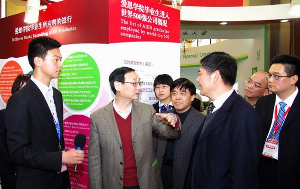 此次参展得到了学校领导及有关部门的高度重视与支持。展会期间,校领导和有关处室领导莅临展位指导。爱恩学院展位位于高校中外合作办学展区主入口,以红色为背景的展板格外引人瞩目,如同一幅绵延展开的精彩画卷,从国际化的教育资源、国际化的质量保障、国际化的人才培养三大方面展示了爱恩学院办学12年来所取得的办学成果。“走进爱恩,走向世界”已经成为爱恩人培养国际化人才的一致追求。学院的办学特色、教学理念、课程设置及毕业生就业情况等,吸引了众多参观者驻足。