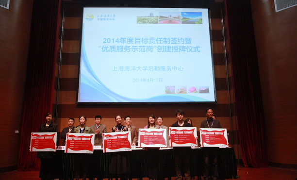 4月17日下午,后勤服务中心在图文中心104会议室举行2014年度目标责任制签约暨“优质服务示范岗”创建授牌仪式。副校长封金章出席大会并讲话。后勤管理处、后勤服务中心领导和中心全体职工参加了会议。会议由直属党支部书记金晔主持。