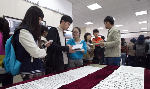 2014年4月22日,由校工会、宣传部、研究生院、后勤服务中心主办的“光影随行、墨海飞舟摄影书法展”在图文中心三楼大厅揭幕。本次展览集中展示了我校教师卢卫平、戴永金的摄影精品、书法佳作。市学校后勤协会名誉会长、市教育后勤管理中心理事长杨奇伟,市教育后勤管理中心主任朱克勤、党委书记沙德银,市学校后勤协会常务副会长兼秘书长成冠润,市摄影家协会副主席谢荣生、市书法家协会副主席张森、市大学书法教育协会常务副会长张信、副会长王延林,校党委副书记何雅,校工会、宣传部、研究生院、后勤服务中心等部门领导以及上海市、我校的摄影、书法爱好者百余人出席活动并参观了展览。工会专职副主席成长生主持开幕式。