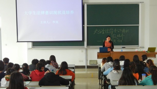 由让同学上讲台写借条这样的生活小事引入,李岚介绍了大学生的法律意识现状,并且通过对“药家鑫事件”、“大学生求职被骗案”、“犯错与犯罪”等各种与大学生相关的案件分析,向同学们普及了法律知识。