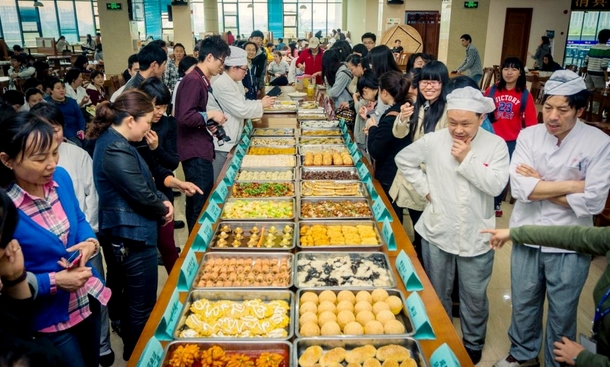 造型精美、香飘四溢的美食和形式新颖的活动吸引了众多同学参与。本届食品节设置了展示区、品尝区和特色活动区。琳琅满目的精美餐点,特色菜肴、点心引来现场师生啧啧赞叹之声,大家纷纷拍照留念,展示餐点最终被师生“品鉴一空”。在特色活动区,“海天新‘食’代——我为‘吃’狂”的“大胃王”比赛、最棒食堂特色菜肴评比、“别忘了你的紫菜包饭”、“水果缤纷”、“今天我买单”、“学生现场包水饺”等10个项目一一亮相,吸引众多师生热情参与。其中,“大胃王”比赛更是将活动推向高潮,吃水饺、喝柠檬水、空口吃麻辣香锅三个环节让师生见识了“大胃王们”的“肚量”。美食节现场笑语不断、场面火爆。
