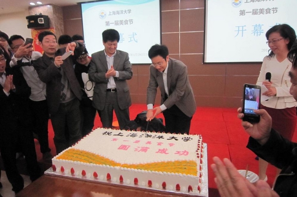 封金章副校长宣布美食节开幕并为师生分切蛋糕