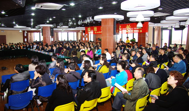 5月10日下午,以“孩子是我们共同的”为主题的爱恩学院2013级学生家长会在工会多功能厅举行。200多位学生家长从新疆、云南、贵州、黑龙江、广东等地赶来参加会议。学院领导、部门负责人出席会议。家长会由2013级四位优秀学生用中英文双语主持。