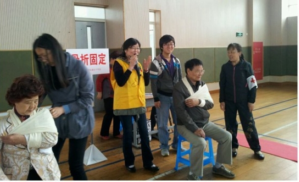 活动中,在居委会工作人员的带领下,同学们首先学习了如何快速止血和骨折固定的急救知识,在红十字会志愿者耐心而细致的指导下,大家很快掌握了其中的技巧。两队红十字会志愿者还进行了一场急救比赛。最后,同学们还观看了消防队警犬的精彩表演。