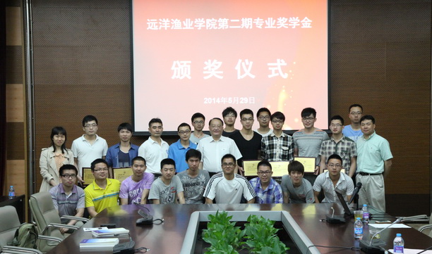 2014年5月29日,远洋渔业学院第二期专业奖学金颁奖仪式在图文信息中心102会议室举行。远洋渔业学院院长潘迎捷教授,副院长宋利明教授以及2010级、2011级学生出席仪式。远洋渔业学院副院长沙锋主持仪式。