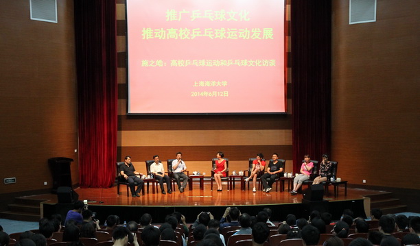 6月12日下午,国际乒联副主席、中国乒乓球学院院长、上海体育学院副院长、原国家乒乓球队女队主教练施之皓一行受邀来到海大,在图文楼104报告厅,接受了题为“推广乒乓球文化,推动高校乒乓球运动发展”的访谈,一同前来的嘉宾有上海体育学院党委副书记、中国乒乓球学院党委书记王玉林,国家乒乓球队女队教练员、世界冠军、奥运冠军丁宁的主管教练员陈彬,前世界和奥运会冠军、现任江苏乒乓球队男队主教练陈玘,国家队男队教练员马俊峰,前世界冠军范瑛,前国家乒乓球队女队主力队员姚彦等。