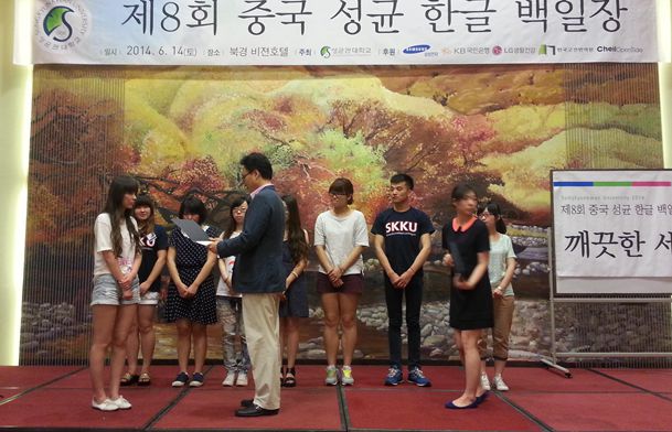 2014年6月14日,韩国成均馆大学主办的第八届成均馆韩语现场写作大赛在北京拉开帷幕。作为国内最高水平的韩语写作大赛,本次大赛吸引了来自我校、北京大学、复旦大学、北京外国语大学等全国50余所大学的87名韩语专业学生参加。我校朝鲜语系2012级1班张润芝在比赛中表现出色,荣获优秀奖。