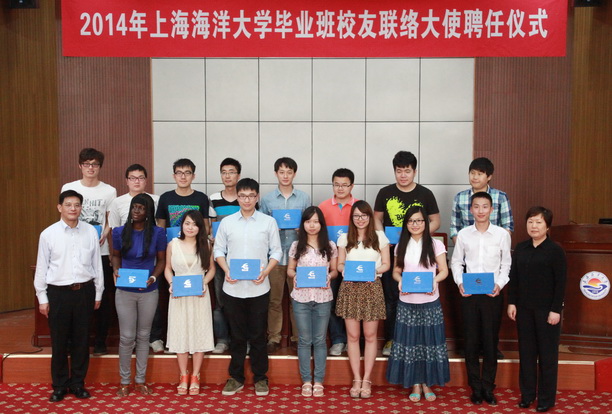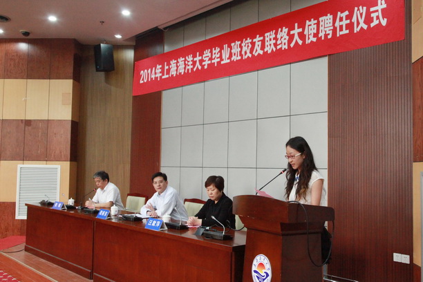 汪歙萍宣读《关于聘任2014届上海海洋大学毕业班校友联络大使的决定》,指出聘任2014届毕业班校友联络大使,旨在进一步做好校友工作,加强校友与母校之间的联络,增进彼此感情和友谊,搭建有效的互动平台,更好地践行“服务校友、服务母校、服务社会”的宗旨,促进学校和校友的共同发展。