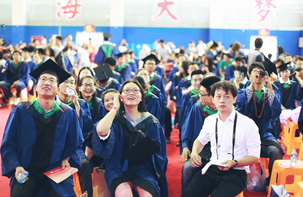 典礼在《毕业歌》的雄壮旋律中落下了帷幕,歌声道尽了毕业生们对母校、对师长、对父母的感恩之情,也表达了大家再次扬帆起航的志向。所有与会人员合影留念,毕业典礼在浓浓温情中落幕。2014届研究生将承载着海大精神,奔向新的征程,在祖国的四面八方书写精彩。