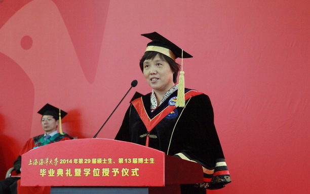 刘红梅代表联合培养单位感谢我校多年来对水科院研究生培养工作的大力帮助和支持,希望我校和水科院未来的合作更加全面,祝愿全体毕业研究生前程似锦。校友代表、水科院东海研究所河口渔业实验室主任、2010届博士毕业生赵峰副研究员动情地讲述了自己的求学和工作经历,向新一届毕业生送上了几点体会:只有无私的奉献,才能发挥人生最大的贡献,要不断学习,善于创新,勇于担重任,敢于迎接新的挑战。最后,他祝福毕业生们前程似锦,大展宏图。