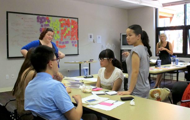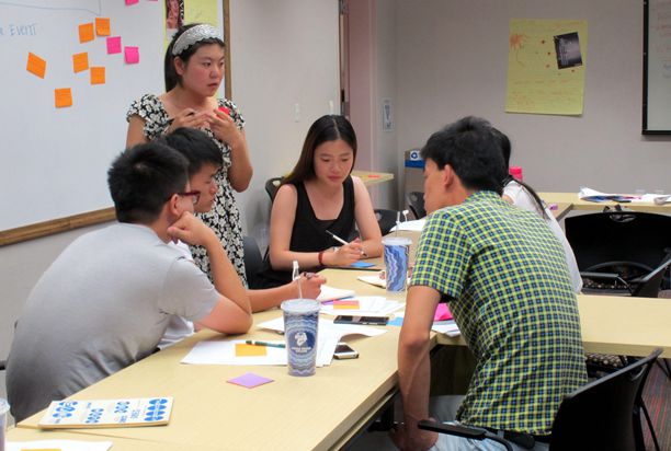 经过短暂休整后,同学们迅速调整好时差,第二天下午就投入紧张地学习生活。通过两天半的导入课程训练,大家适应了新的教学方法,领会了创新创业的要素分析方法。同学们积极思考并大胆用英语表述自己的观点,师生之间交流热烈。在分享各自的创意之后,20位同学组成五个小组,将选择团队成员中的一个创意作为本次创新创业活动主题进一步优化。