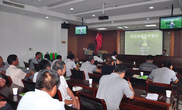 23日下午,应汤站长邀请,科技服务团第六分团在海盐县海洋渔业局,对全县渔业技术人员、养殖大户和科技示范户40余人进行了南美白对虾养殖和稻田种养讲座。钟国防副教授作了题为“南美白对虾健康养殖技术”的报告,报告从实践出发,重点介绍了南美白对虾的苗种选择与培育、水质调控、改底、调水、饲料选择和适量投料等内容。宋增福副教授介绍了南美白对虾常见病害、病害发生的特点和对虾病害防治面临的困境与对策等内容。刘其根教授系统地介绍了稻田养殖技术的历史、传统稻田养殖模式、近年来新兴的稻田养殖模式和适合海盐当地的养殖模式和品种。由于内容贴近生产实际,内容丰富且图文并茂,讲座受到了大家热烈欢迎。