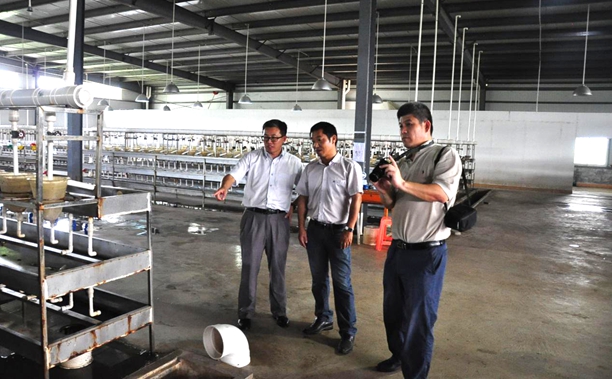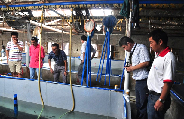 22日上午,服务团奔赴著名的海南文昌会文镇的“虾苗谷”,该地区是海南虾苗厂最集中的区域,最多的时候有虾苗厂600余家。服务团先后参观了鸿源虾苗场和海生虾苗场,并与企业负责人进行了座谈。服务团与对虾苗场负责人就南美白对虾亲虾进口和一代苗生产管理等进行了深入探讨,并就在国内开展对虾选育的可行性进行了交流。下午,服务团还参观了珍珠石斑鱼鱼苗标粗场和东风螺养殖场。