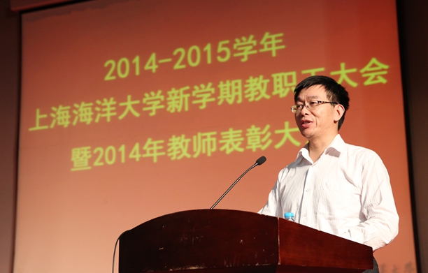 校党委书记吴嘉敏讲话并做开学报告。吴书记首先代表学校向辛勤耕耘在一线的全校广大教育工作者致以节日的问候,向受到表彰的各位教职工表示崇高的敬意,希望广大教师学为人师、行为世范,努力成为有理想信念、有道德情操、有扎实知识、有仁爱之心的好老师。吴书记围绕学校当前面对的形势与任务、困难与挑战、改革与发展三个方面进行了报告,他指出,当前学校面临着国家高等教育综合改革的有力形势,但同时也面临着困难与挑战,学校办学资源紧缺现状没有完全改变,提高学生自我学习能力和自我进取意识任重道远,师资队伍建设的方式方法和学术水平提升的政策效果尚需更有力的制度保障,需要继续坚持“转型发展、内涵提升”,以提高质量为中心,完善海洋学科结构与布局,提升学科水平,凸显人事管理制度和分配制度的激励导向。最后他号召全体教职工凝心聚力,攻坚克难,狠抓落实,推动学校各项事业科学发展,为全面完成全年工作任务,实现“十二五”发展规划目标而共同努力。