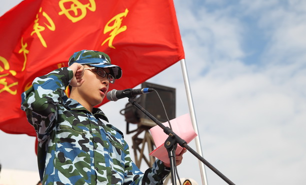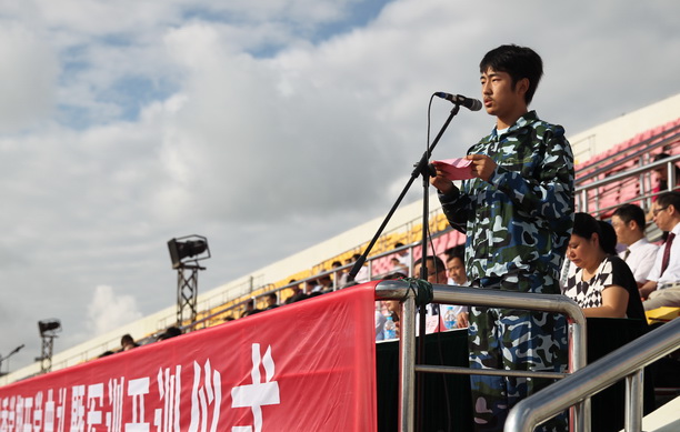 吴建农副校长宣读军训团干部任职命令。军训团团长殷剑少校讲话时希望,我校2014级新生能够以高标准、严要求,安全、顺利完成本次军训。通过军训增进了解、加强沟通、深化友谊。