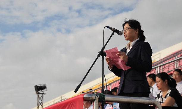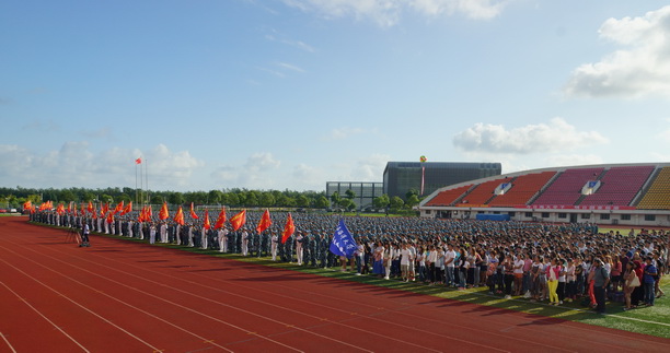 天高云淡、绿草茵茵。9月15日上午,我校2014年秋季学期开学典礼暨本科生军训开训仪式在学校体育场隆重举行。校领导吴嘉敏、程裕东、汪歙萍、何雅、黄硕琳、封金章、吴建农及军训团团长、海军某部副参谋长殷剑等出席了典礼,各学院、职能部门负责人、承训部队教官、教师代表、全体2014级本科新生、研究生、留学生近4000人参加了开学典礼。大会由党委副书记汪歙萍主持。