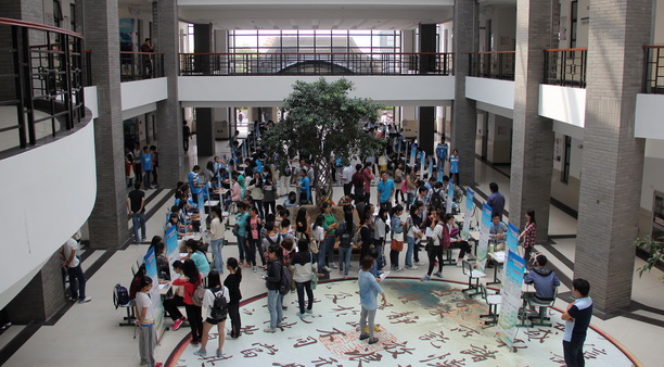 10月11日下午,校勤工助学岗位招聘会在第二教学楼底楼大厅举行。30个校内用工部门总计提供了298个勤工助学岗位,共吸引了2500余名同学前来。