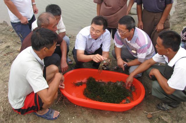 中华绒螯蟹“江海21”将科研院所、良种生产单位、技术推广机构、公司和养殖专业合作社的资源与人才联合起来,不同于以往的育种单位先选育、生产单位后应用的水产育种模式,建立了产学研结合、育繁推一体化的育种联盟,形成了边育种、边生产对比、边中试、边应用、边产生效益的水产生物育种新格局,大大提高育种成果的转化率和应用效率。我校王成辉教授是该品种育种技术路线的制定者和实施者,是育种工作的总负责人和总协调人。