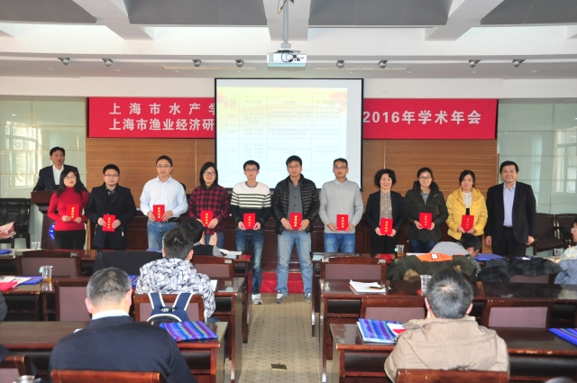 潘迎捷、吴嘉敏、梁伟泉分别向获得2015-2016年度上海市水产学会优秀科技论文一等奖、二等奖、三等奖的作者颁发了获奖证书。