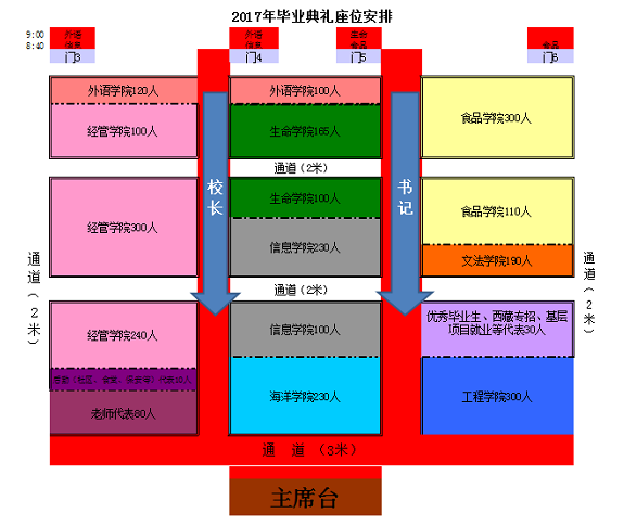 2017届本科生毕业典礼暨学位授予仪式现场座位安排: