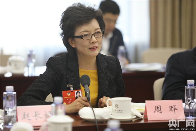 3月5日全国政协教育界别分组讨论会举行,讨论主要围绕政府工作报告进行。委员们发言积极、讨论热烈。图为全国政协委员周晔。