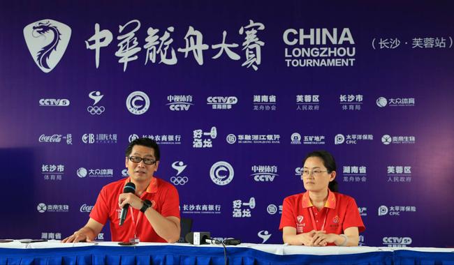 中国龙舟协会秘书长余汉桥(左)芙蓉区人民政府副区长梁汝岚(右)