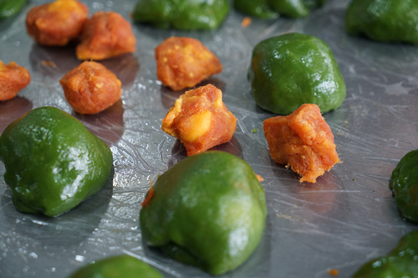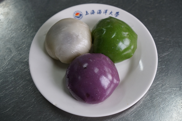 有人说,“青团的味道就像春天,不甜不腻,却有着清淡又悠长的香气。”上海海洋大学推出了咸蛋黄肉松青团、蛋黄豆沙青团、枣泥青团、玫瑰豆沙青团、马兰头香干青团、紫薯味青团六种口味,前两种单价4元,后四种单价2.5元。有同学点评玫瑰豆沙青团说,软糯、香甜的豆沙馅,外表散发着巧克力色的光泽,嚼上一口,豆沙甜蜜的味道与沙绵的口感,不会过分甜腻,反而有种独特的清新感。