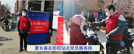 工程学院研究生第二党支部党员、2017级机械工程专业研究生夏长春,假期在家第一时间向安徽省马鞍山市花山区金家庄街道党工委提出申请,做一名社区疫情防控的志愿者。街道党工委负责人非常高兴,并安排他负责社区的一个小区,在小区门口为本小区进出的居民进行体温测量,并对外来的人员前往疫情进行登记,叮嘱居民做好14天的居家隔离。