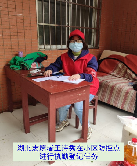 王诗秀是水产与生命学院2018级渔业发展专业的研究生,她在湖北省咸宁市咸安区贺胜路南苑小区做志愿者工作。“2020年湖北的春天迟到了,自我隔离时,这个城市的心跳,是消毒车驶过的低鸣,提醒我们生命的脆弱和坚韧”,王诗秀表示。那时候她加入了咸宁市民间自发的志愿者工作群,共有五十三个人,大家分工负责线上物资筹集、求助信息,资源信息收集、医院对接和线下物资输送。湖北的疫情有所缓解后,小区发出招募社区志愿者的通知,她开始了社区志愿者的服务工作。工作内容包括住户的家庭成员身份及健康状况的登记和更新、住户瓜果蔬菜和生活用品的需求登记以及分发、居民在小区内活动的监察和限制。“那些在阳台久久伫立的身影,在志愿者们送菜的时候,露出的是口罩盖不住的弯弯的笑眼。疫情后的春天该来了。”
