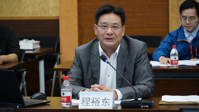 程裕东代表学校对评估专家组的到来表示热烈欢迎和衷心感谢。他介绍了学校的历史沿革、发展现状、转型发展和格局创新。他指出,做好学校的语言文字工作不仅是《中华人民共和国国家通用语言文字法》法律实施的需要,也是大学文化建设的重要组成部分。学校致力于建设“一流学科”文化育人工程,在语言文字规范化的工作中,始终坚持“三纳入、一渗透”的目标与方法,将其融合到一、二、三课堂。他表示,学校会通过语言文字规范化达标评估,不断完善制度体系、创新工作机制、丰富工作载体,推动我校语言文字工作再上新台阶。