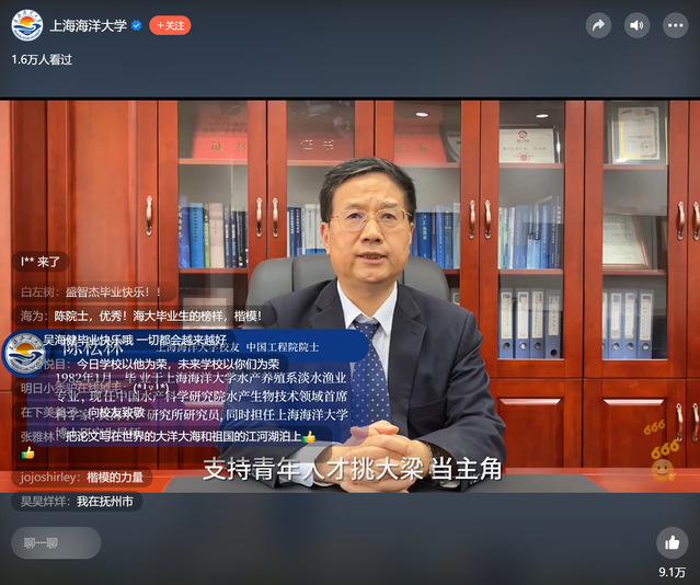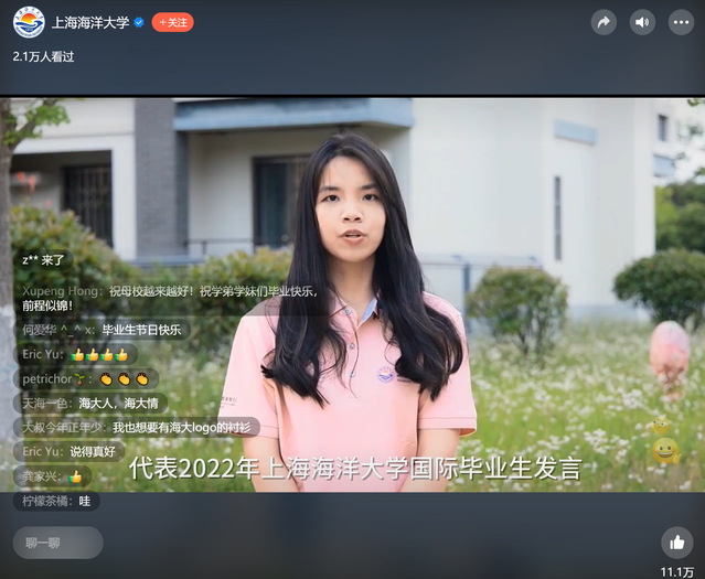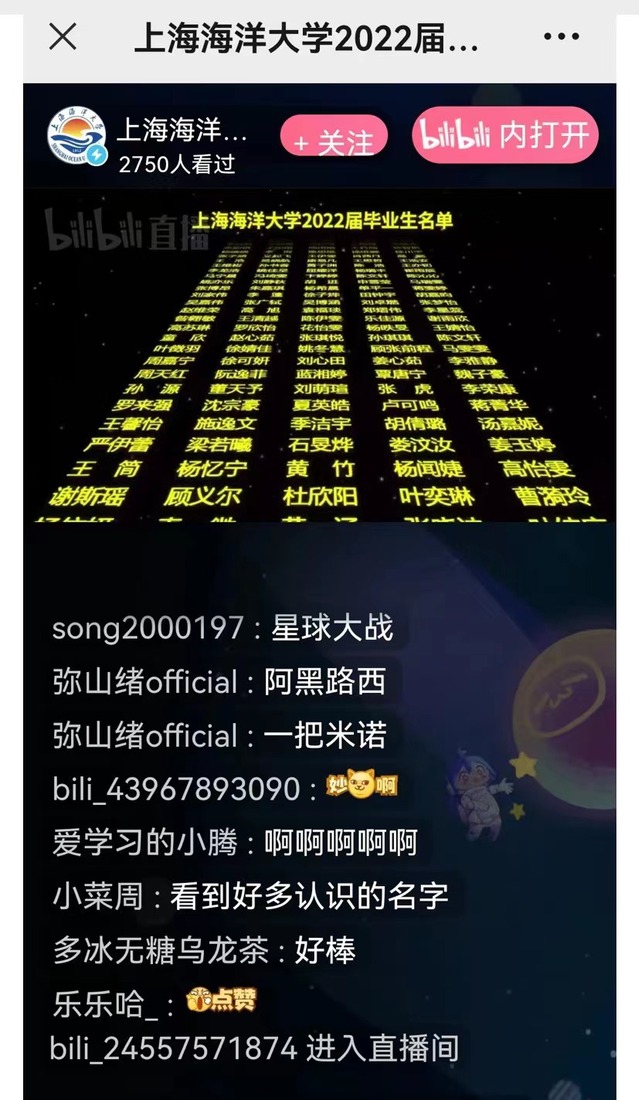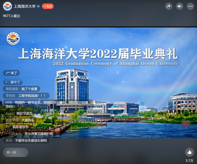 6月11日上午,4402名2022届毕业生与师长、亲友相聚“云端”,共同参加上海海洋大学首次“云端”毕业典礼,共同见证2022届毕业生开启人生新征程。