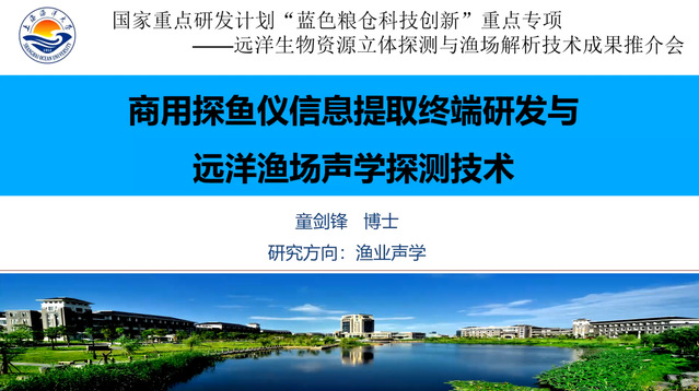 本次会议介绍了鱼探仪的基本工作原理及其在生产及科研领域的多方面应用,着重介绍了商用探鱼仪信息提取终端的研发及其在远洋渔场重要渔业物种识别、资源探测、智能捕捞中的应用价值。该项目成果的推广应用对目标渔场精细化探测具有重要的意义,能使我国的远洋渔船成为全球海洋信息采集平台,为国家的海洋战略服务。