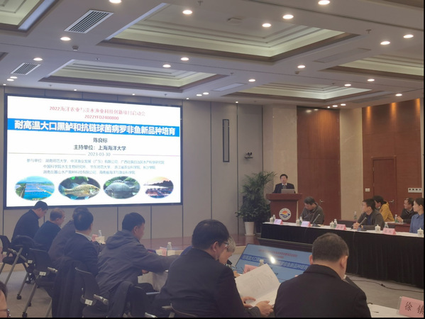 3月30日,十四五国家重点研发计划“海洋农业与淡水渔业科技创新” 重点专项“耐高温大口黑鲈和抗链球菌病罗非鱼新品种培育”项目启动会在上海海洋大学召开。上海海洋大学为项目牵头单位,上海海洋大学水产与生命学院陈良标教授担任首席科学家。中国水产科学研究院黄海水产研究所陈松林院士,华中农业大学王卫民教授,华南农业大学秦启伟教授,中国水产科学研究院淡水渔业研究中心杨弘研究员,中国海洋大学胡景杰教授、艾庆辉教授,厦门大学徐鹏教授和中国科学院水生生物研究所徐镇研究员作为项目咨询专家到会。