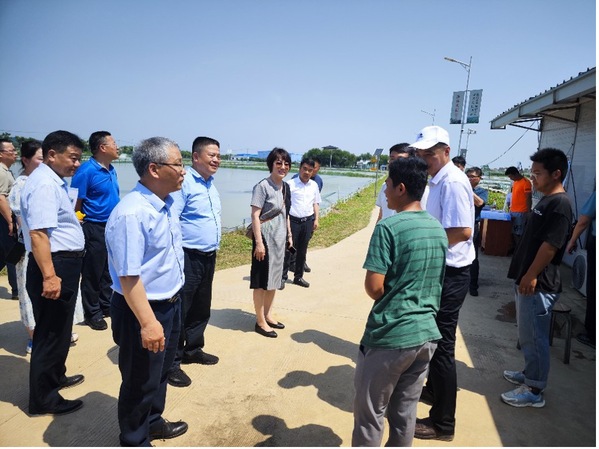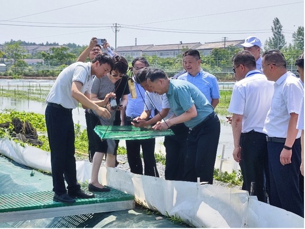 校领导与全国水产技术推广总站、安徽省水产技术推广总站以及当地政府领导在科研中心合影